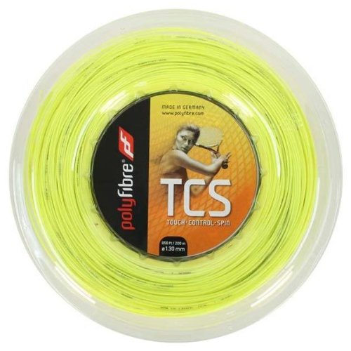 An innovative string breakthrough Polyfibre TCS 130 Touch Control Spin is one of the softest copolyester strings on the market This string is modified with polyethylene added which results in greater ball pocketing for enhanced comfort and control The surface is treated to mimic the surface of an orange which helps to easily generate spin TCS was designed especially for topspin and tournament players seeking control comfort and spin potential Due to the high elasticity and added ball pocketing of this string Polyfibre suggests increasing tension by 24 compared to a basic polyester stringConstruction Monofilament copolyesterColor YellowGauge 130mmLength 660 200m